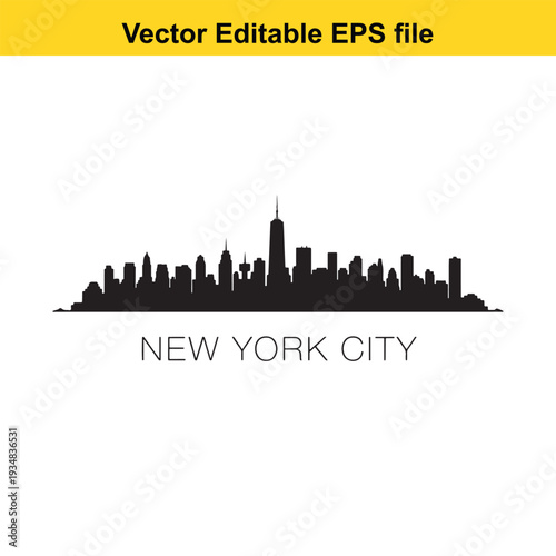 © Shah, Naklejka premium New York City Skyline Silhouette Vector Illustration on White