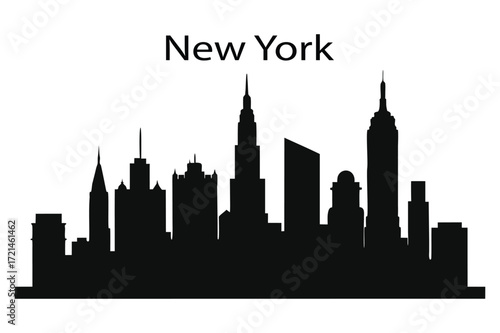 Naklejka premium New York City Skyline Silhouette with Iconic Landmarks
