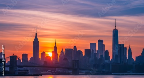 © Diahpuji, Obraz premium New York City Skyline Sunrise Silhouette.