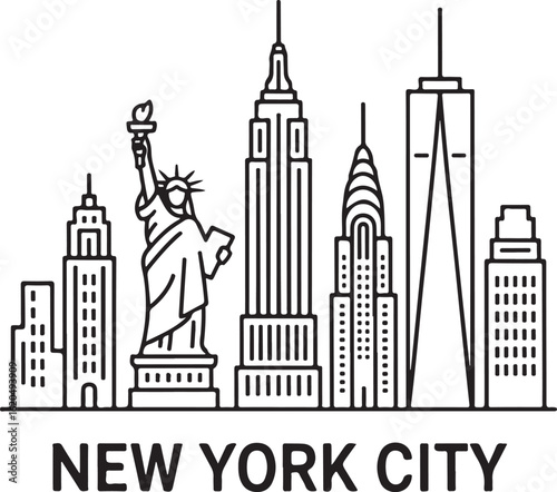 Naklejka premium New York City Skyline Vector Iconic NYC Landmark Silhouette on White Background