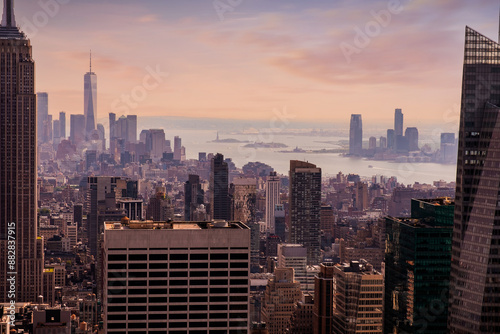 © CK, Fototapeta premium New York City skyscrapers rooftop urban view.