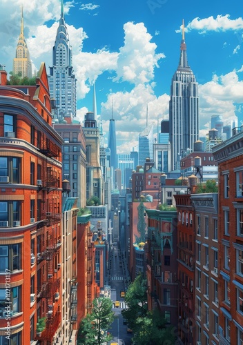 © Adobe Contributor, Fototapeta premium New York City Street View Illustration