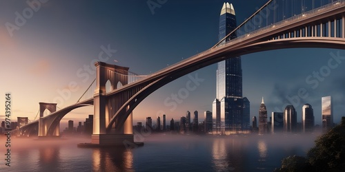 © Muzamil, Obraz premium new york drone style picture brooklyn bridge generative ai