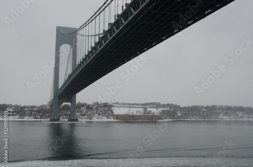 © Chris, Fototapeta premium New York Harbor Landmarks in a snow storm