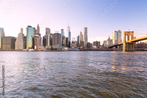 Obraz premium New York, Lower Manhattan skyline with Brooklyn Bridge