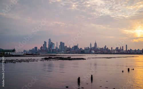 Fototapeta premium New York Manhattan skyline at sunset reflection river