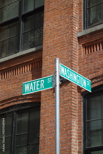 © Nini, Obraz premium New York : Mur en briques et panneaux de rue
