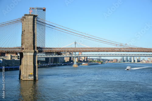 © Andrey Vlasov, Naklejka premium New York, NY, USA - JUNE 2, 2019: View to Brooklyn Bridge from Pier 15