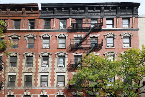 Fototapeta premium New York, old apartment building with stone decorations around window frames