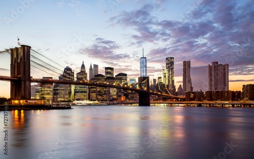 © Sergiu, Naklejka premium New York Skyline with Brooklyn Bridge Hudson River Manhatten dur