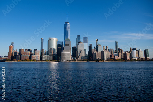 Fototapeta premium New York, United States. Panorama view of New York city skyline in Midtown Manhattan. USA, NYC, NY, Manhattan. American big city. Lower Manhattan skyline. New York from New Jersey.