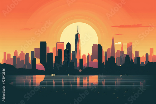 Fototapeta premium New York urban landscape with cityscape silhouette. Pattern with houses. Illustration