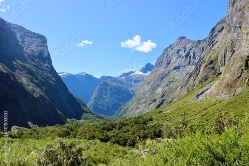 Fototapeta premium New Zealand mountains green gras blue sky