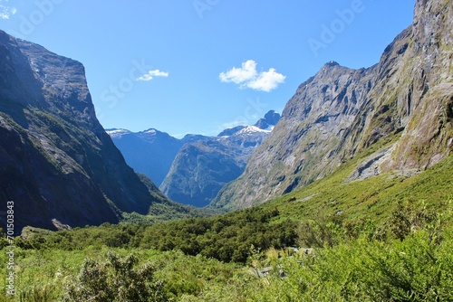 Fototapeta premium New Zealand mountains green gras blue sky