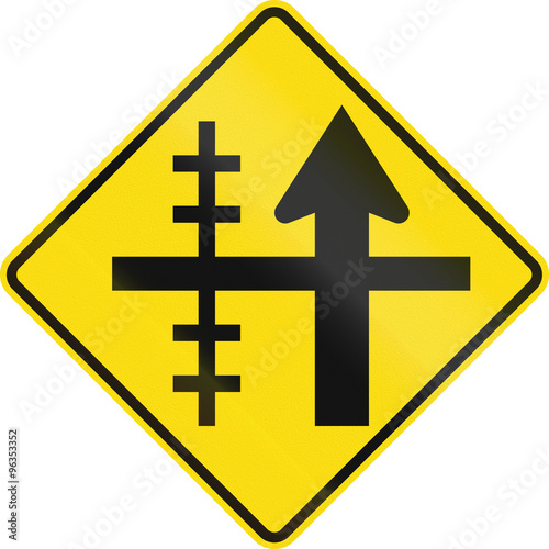 Fototapeta premium New Zealand road sign - Level crossing on controlled crossroad on left
