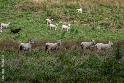 Fototapeta premium New Zealand sheep standing in field.