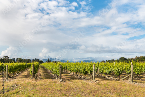 © Patrik Stedrak, Obraz premium New Zealand vineyards with cloudy sky and copy space