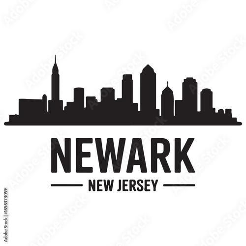© Nargis, Naklejka premium Newark skyline horizontal banner. Newark, New Jersey. Vector template for your design. Vector black silhouette. with white background