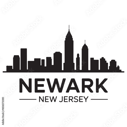 © Nargis, Naklejka premium Newark skyline horizontal banner. Newark, New Jersey. Vector template for your design. Vector black silhouette. with white background