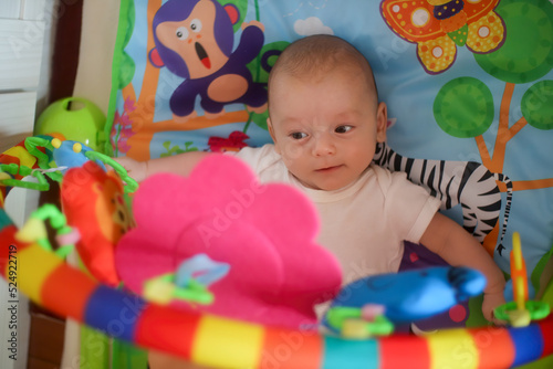 © Emanuel, Obraz premium Newborn baby playing on the baby gym playmat
