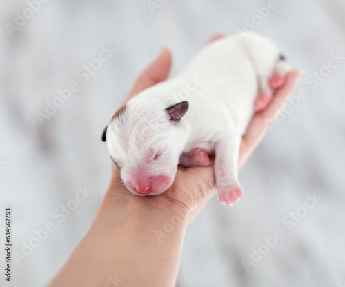 © Tatyana Gladskih, Fototapeta premium Newborn puppy in the palms