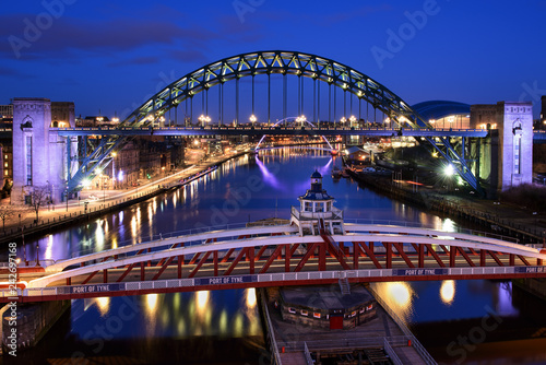 © Stephen Boyd , Fototapeta premium Newcastle Tyne bridge and Swing bridge at night