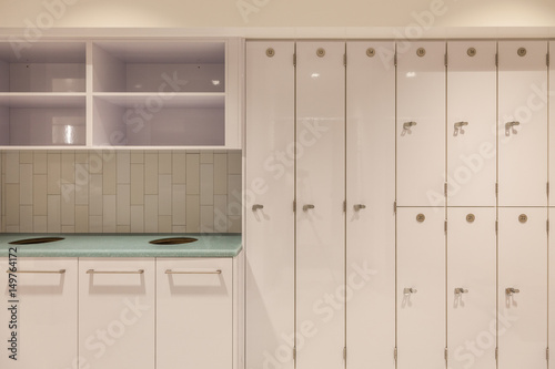 © Leslie C Saber, Fototapeta premium newly remodeled locker room lockers