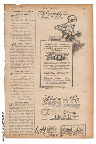 © LiliGraphie, Obraz premium Newspaper page english text advertising pictures Vintage magazine