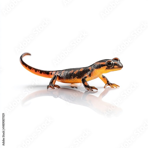 © SKY, Obraz premium Newt crawling on wet surface on white background