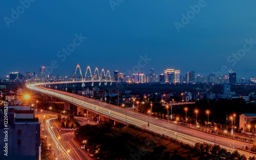Fototapeta premium Nhat Tan Bridge at Night in Hanoi, Vietnam