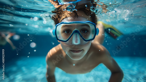 © VicPhoto, Naklejka premium Niño buceando en una piscina