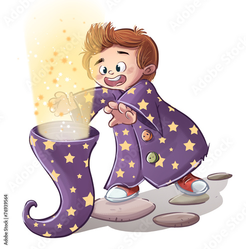 © cirodelia, Fototapeta premium niño con disfraz de brujo