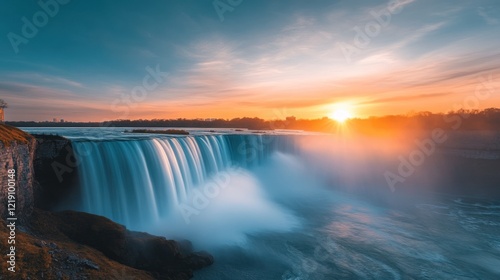 © subur, Fototapeta premium Niagara Falls Sunset Spectacle: A Majestic Waterfall at Golden Hour