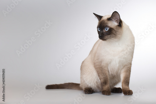 © Couperfield, Fototapeta premium Nice adult male Thai cat posing on background in studio