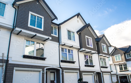 © Roman, Naklejka premium Nice and comfortable neighborhood. Townhouses in the suburbs of Canada. Booming real estate.