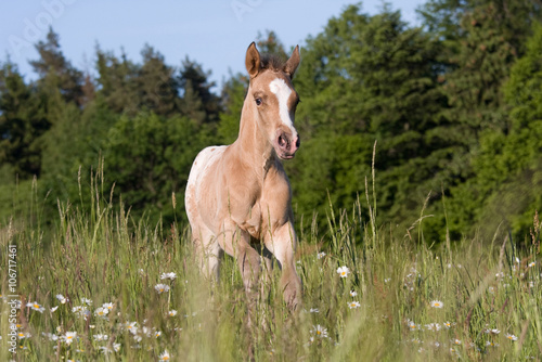 © lenkadan, Fototapeta premium Nice appaloosa foal running