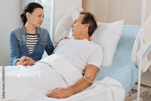 © zinkevych, Obraz premium Nice caring wife visiting her husband