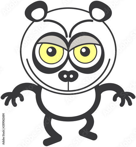 Fototapeta premium Nice cartoon panda bear with rounded ears and black rings around eyes while...