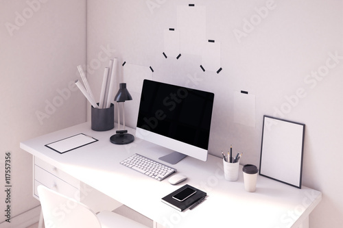 Obraz premium Nice computer table with poster on it