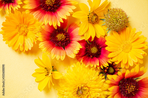 © Maksim Shebeko, Fototapeta premium nice flowers on the yellow background