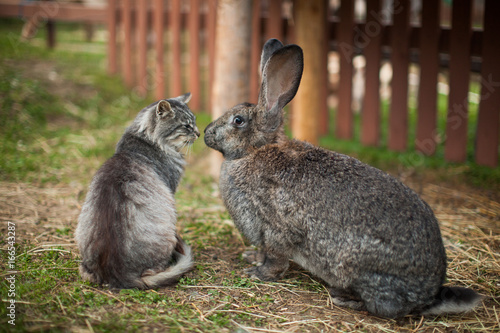 © Tsyb Oleh, Naklejka premium Nice photo of cat and rabbit friendship