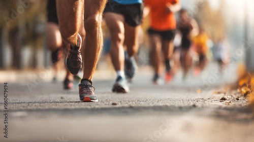 © PhotoVerse, Fototapeta premium Nice photo of group of Men Runners Legs in a Road Race.