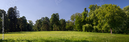 Fototapeta premium Nice sunny day summer forest panorama green nature ecology