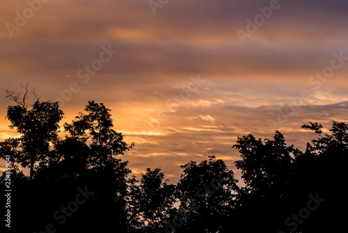 Fototapeta premium Nice tree silhouette with sunset sky and clouds