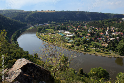 Fototapeta premium Nice view from hill Rivnac to Vltava meander with small birch tree