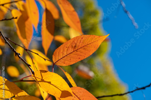 Obraz premium Nice yellow orange red leaves nature background abstract macro close up autumn