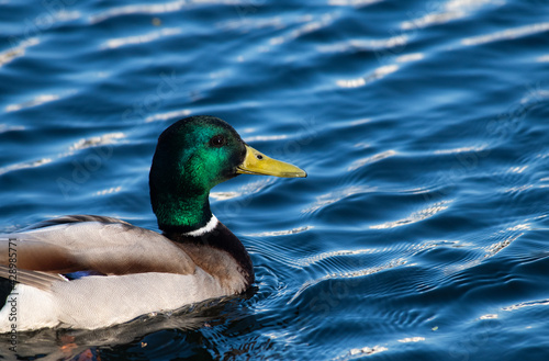 Obraz premium Nice young duck swiming on lake water in wild nature
