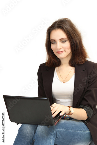 © serg9768608, Naklejka premium nice young girl with the laptop.