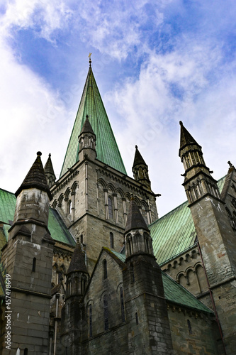 Fototapeta premium Nidaros cathedral in Trondheim with dramatic sky