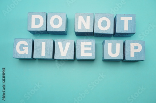 © may1985, Obraz premium Nie poddawaj się słowo wykonane z drewnianych kostek z literami alfabetu na niebieskim tle